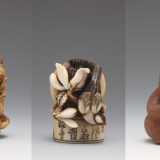 左から:小柳左雁 「ともに」 黄楊 H4.1cm、栗田元正 「辛夷花」 鹿角 H4.3cm、